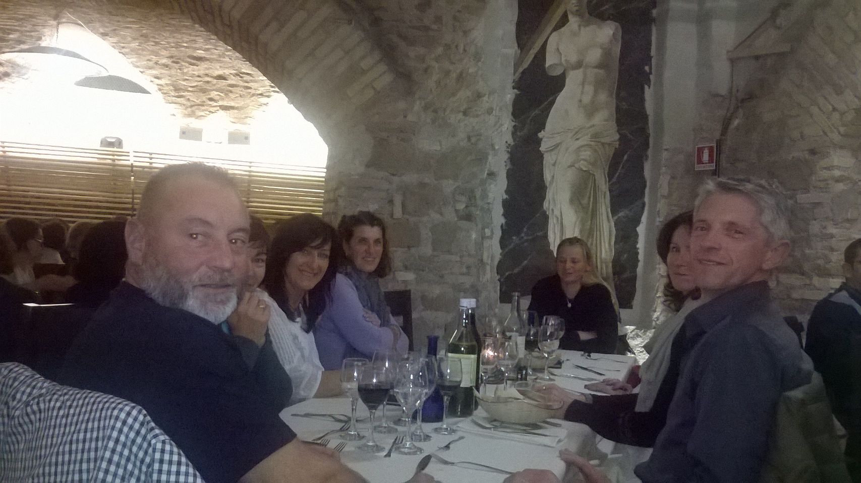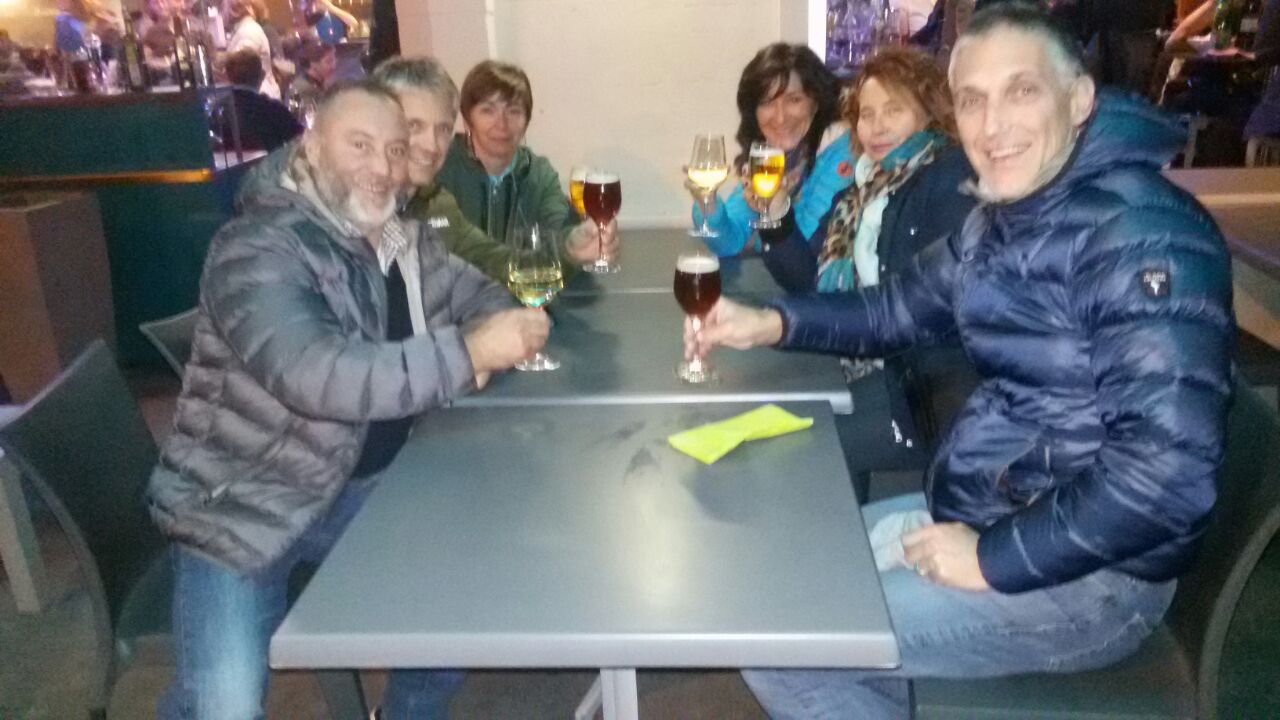 È il momento della cena. Intrufolati grazie a estenuante opera di convincimento dello scettico proprietario che reclamava di avere il tutto esaurito per la presenza di una compagnia di duecento brasiliani in visita a San Pietro. Un rapido sopralluogo ci palesa che si tratta di “turisti over aged” – per dirla nei termini delle nostre magliette. Nonostante lo scherzo del destino, non manchiamo però ai doveri di mostrare al mondo che siamo veronesi – anzi Lugagnanesi – “tuti mati”. E molti di noi lo sono davvero. I cori nel locale si alternano volentieri: una volta cantano i camerieri e una volta cantiamo noi, con i nostri canti tipici, tra lo sbigottimento dei brasiliani over-aged.