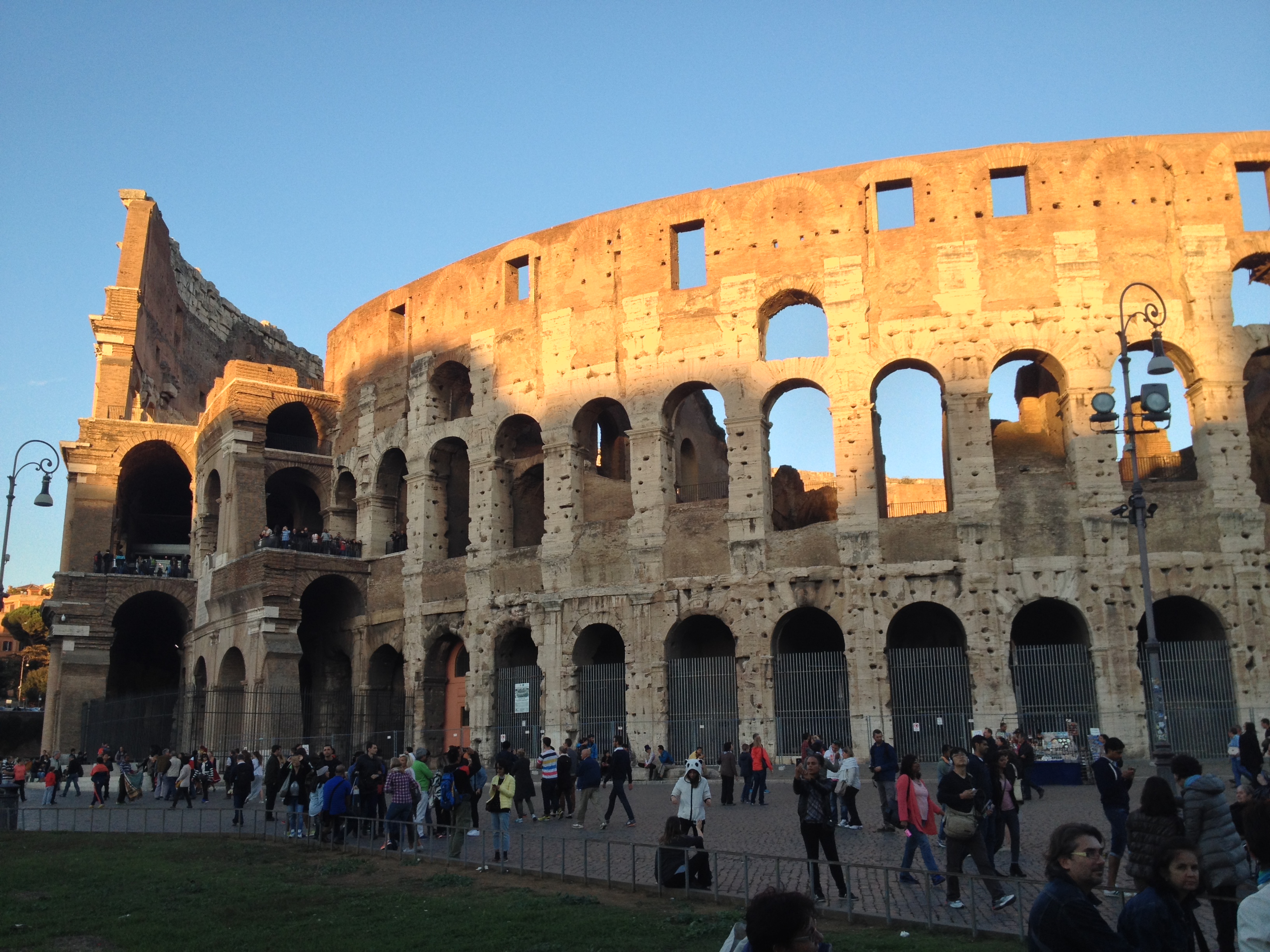 Dopo la foto, il gruppo recupera l’energia per affrontare la scalata del Campidoglio e passeggiare così lungo Via dei Fori Imperiali recentemente chiusa al traffico: forse ci saranno state proteste a Roma per questa chiusura ma è stupendo vedere le antiche vestigia romane libere dal traffico asfissiante. Uno sguardo rapido al maestoso Colosseo: come si può stare a Roma senza gustarsi un aperitivo con vista sul monumento simbolo? Infatti non si può, e lo sanno pure i baristi romani. “Siete a Roma e sono le 18 e 10. Dalle 18 sedersi qui significa pagare almeno una decina di euro a testa per qualsiasi cosa si prenda”.