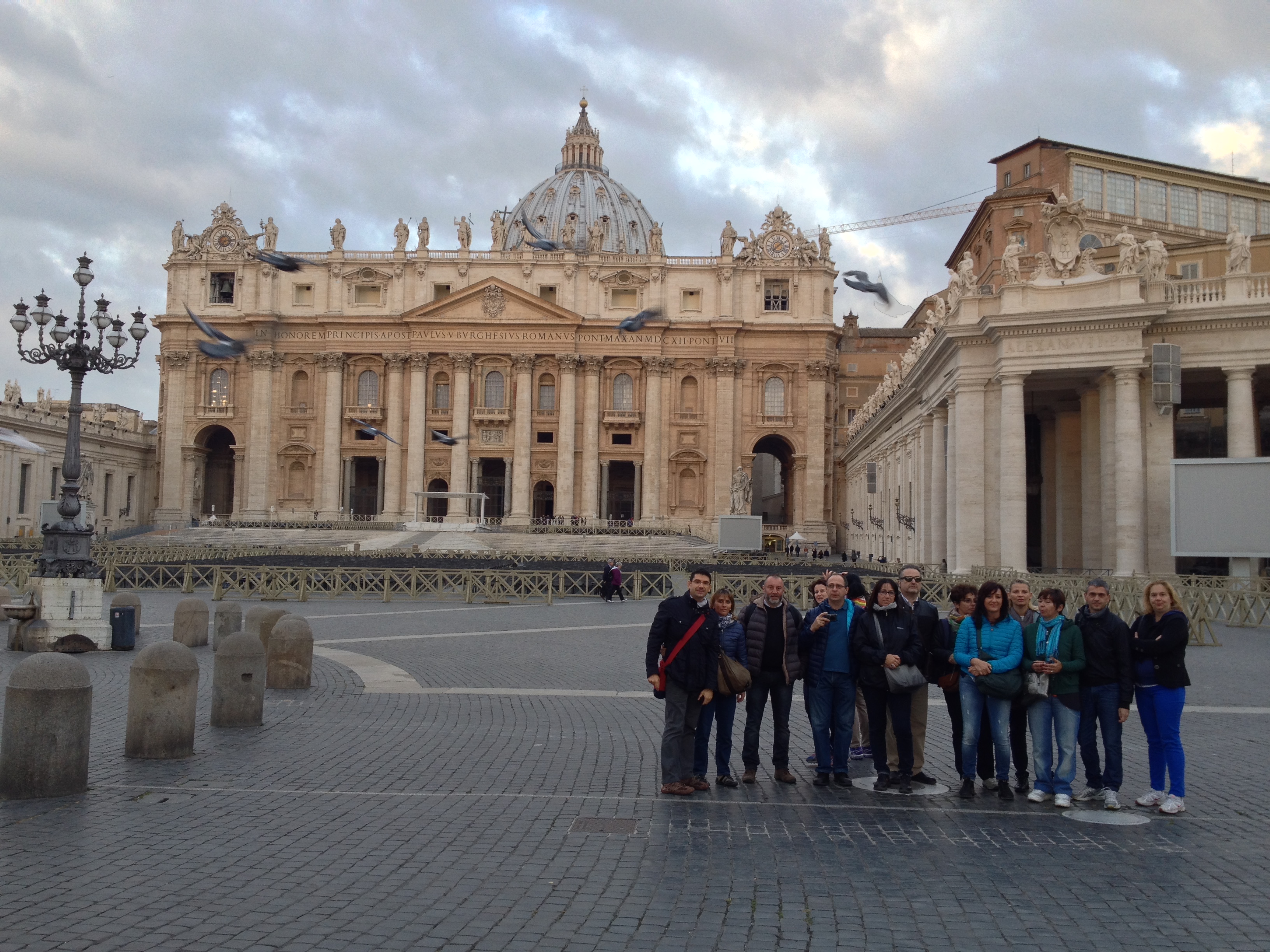 Alla fine, tutti diventiamo amiconi del proprietario del ristorante un romano-egiziano che ci congeda pregandoci di ritornare presto. La mezzanotte ci avvisa che è già domani e una compagna di viaggio, al secolo C.C., festeggia il compleanno. Ovviamente non è consentito non festeggiare in un “locale in”. E così, suo portafoglio alla mano, ci si intrattiene fino a tardi in una spettacolare Roma notturna, fiduciosi che l’indomani l’ora solare ci avrebbe strizzato l’occhio. Ciononostante si rientra a ora tarda e ognuno carica la sveglia per le 5.15, ora di partenza per arrivare finalmente a San Pietro.